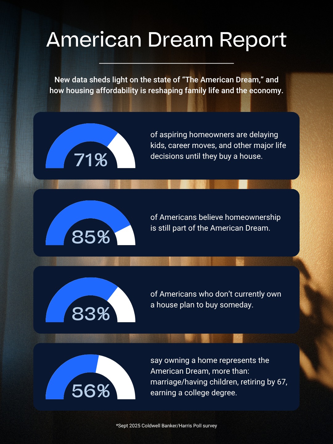 According to the Coldwell Banker 2025 American Dream Report, conducted by The Harris Poll, 71% of aspiring homeowners—those who don’t currently own a home but would like to someday—say they are delaying major life milestones such as marriage, starting a family, or career changes until they can afford to buy.